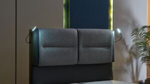 Sängyssä kätevät yövalot sekä tavaratila.