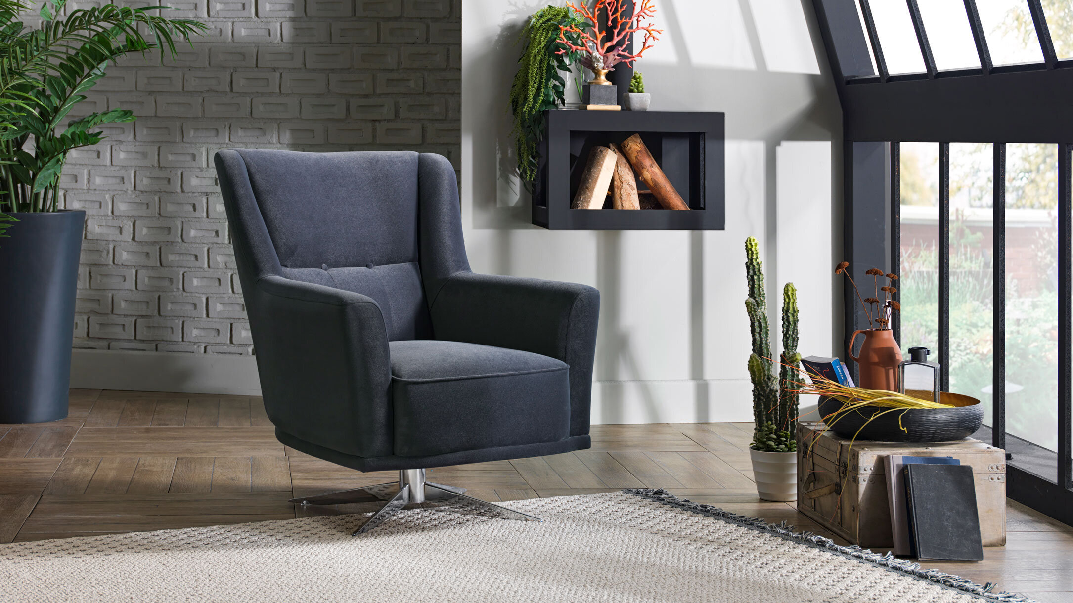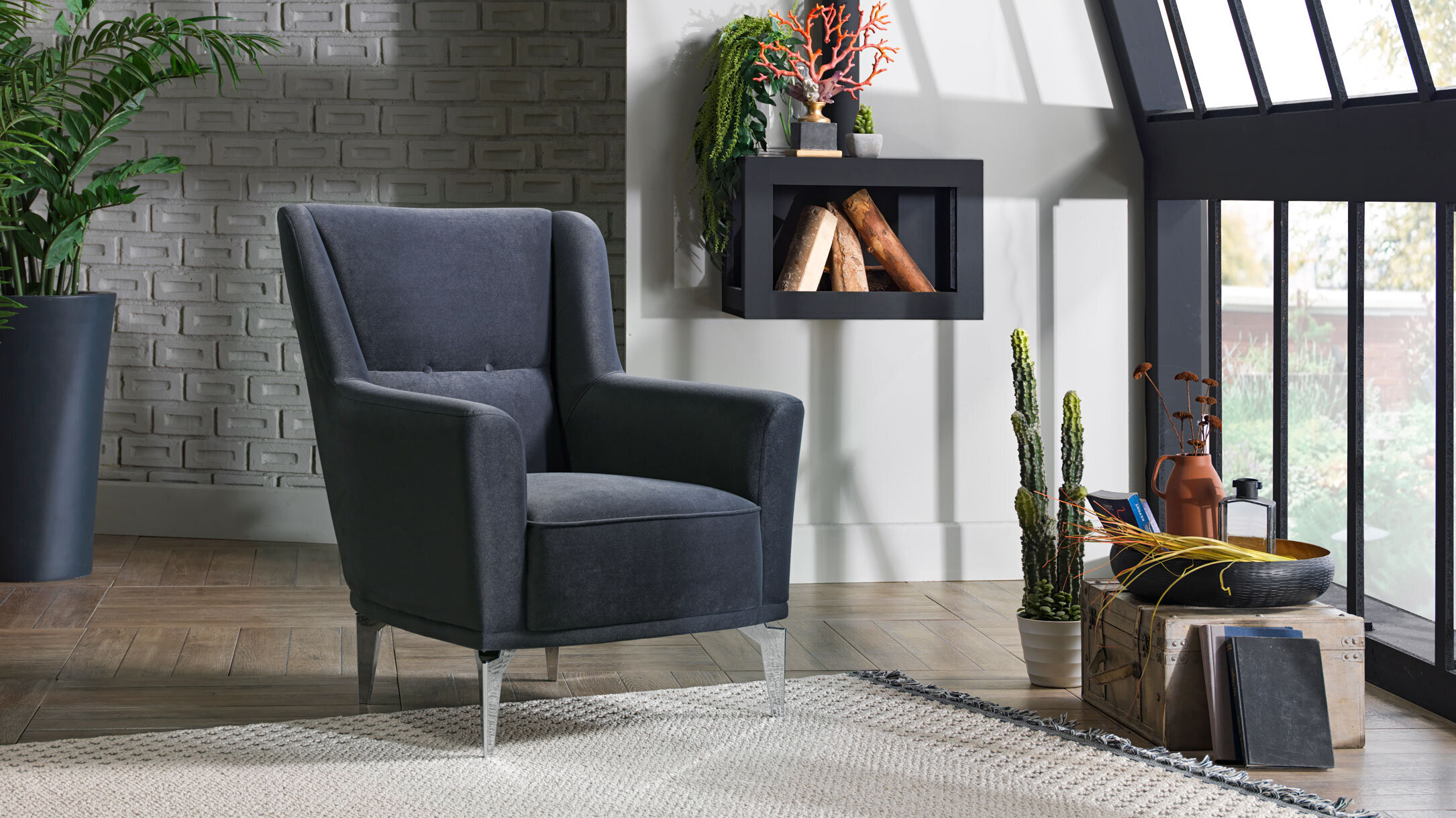 Nojatuoli 1: Leveys 76 cm, Korkeus 97 cm, Syvyys 88 cm