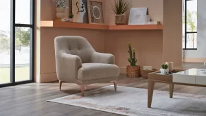 Nojatuoli: Leveys 75 cm, Korkeus 84 cm, Syvyys 83 cm, Istuma leveys 49 cm, Istuma syvyys 58 cm, Jalan korkeus 17 cm